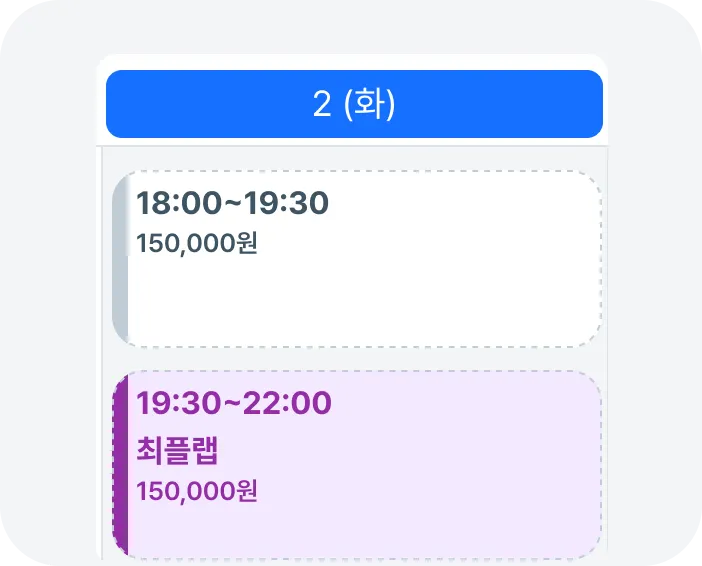 요청하신 일시에 다른 슬롯이 이미 생성되어있는 경우, 위 문구가 나타나요.