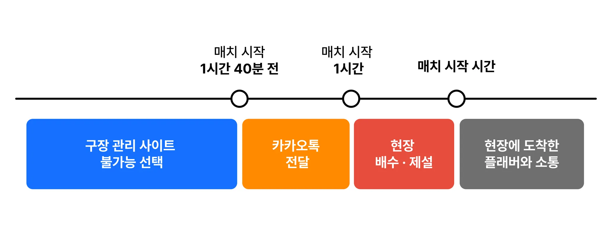 매치 시작 1시간 40분 전 ~ 1시간 전: 카카오톡 채널로 알려주세요.