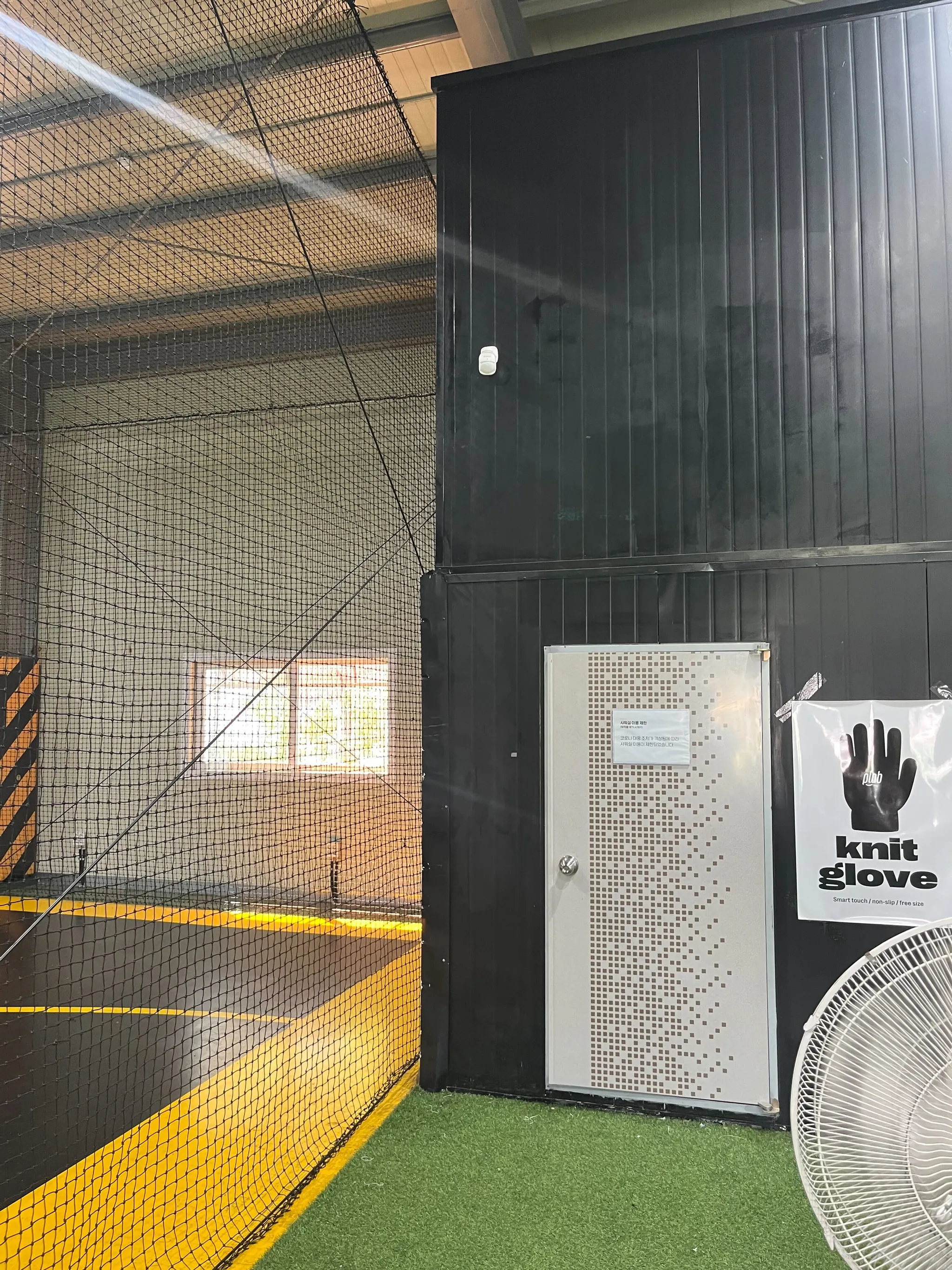 실내 구장 자판기 옆 라커룸 안에 조끼가 있어요