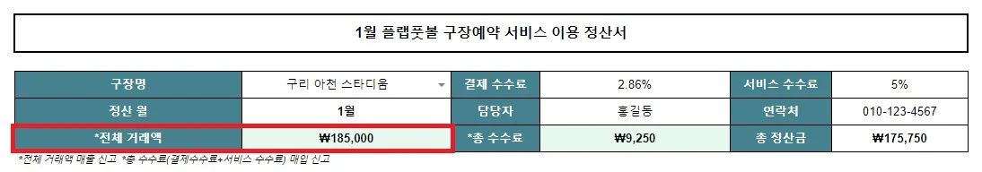 구장 예약 전체 거래액을 매출로 신고해주세요.