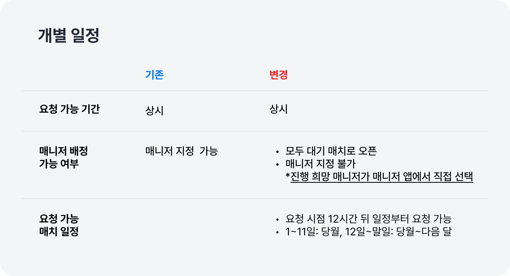 2025.8.18. 매치 추가 요청 승인 시스템이 개선되며 변경된 내용은 아래 이미지에서 자세히 확인하실 수 있어요.