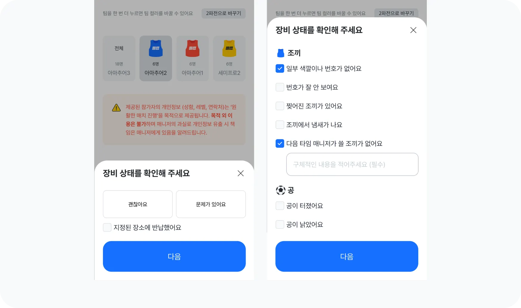 런드리 구장에서 매치를 진행한다면, 매치 리포트 작성 전 장비 상태를 먼저 확인해 주세요.