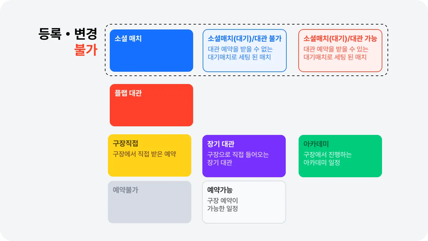 등록 및 수정을 희망하시는 경우, 소셜 매치 관리에서 수정/취소 요청해 주세요.