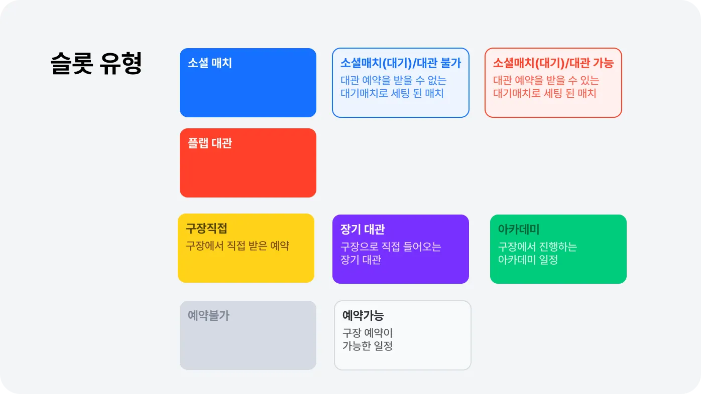 플랩 사이트에서 이용자가 구장을 예약하면 플랩 대관 슬롯이 생성돼요.